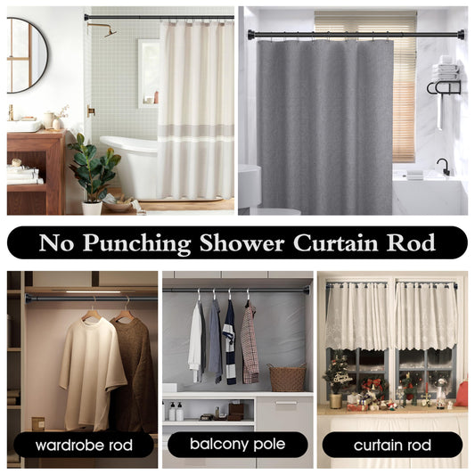 Stainless Steel Extendable Shower Curtain Rod (27-76 inch) No Drilling Installation (2 Color Option: Black/Silver)