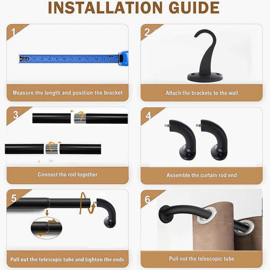 Extendable Curtain Rods 48"-84"/ 28"-48", Black