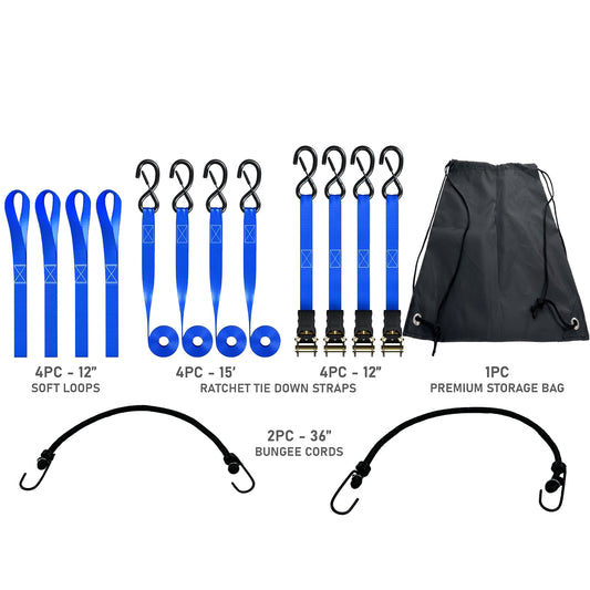 15-Piece Ratchet Straps Heavy Duty 15 FT / 2200 LB