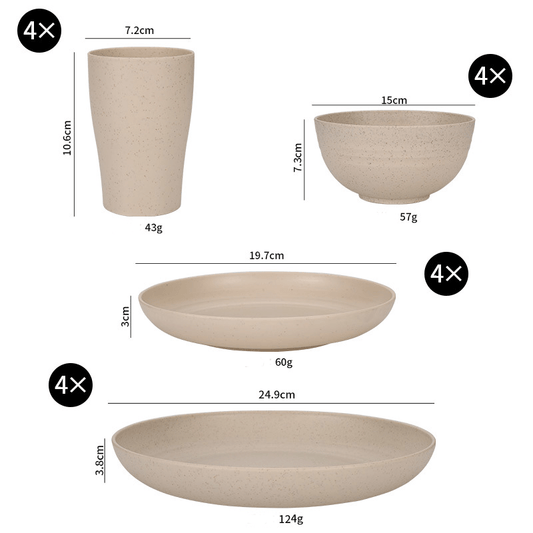 16-Piece Kitchen Wheat Straw Dinnerware Set Service for 4 (3 Color Options)