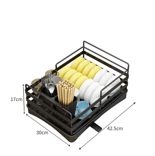 Steel Kitchen Drying Rack with Cutlery Holder, Black