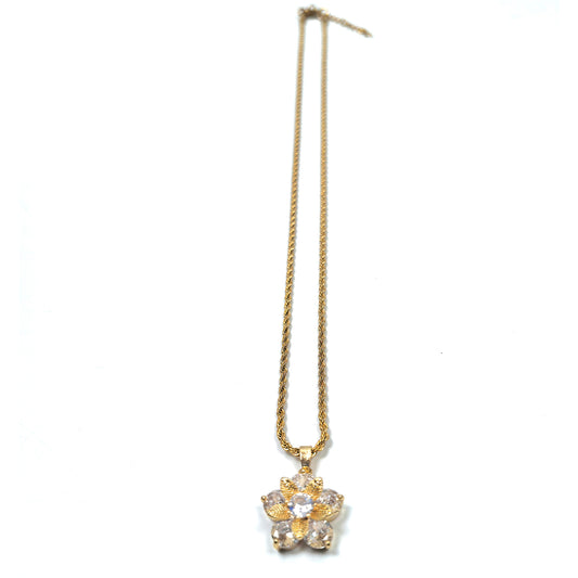 Gold Plated Flowers & Dragonfly Pendant Necklace