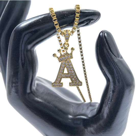 Gold Plated Monogram A Crown Pendant Necklace with Cubic Zirconia