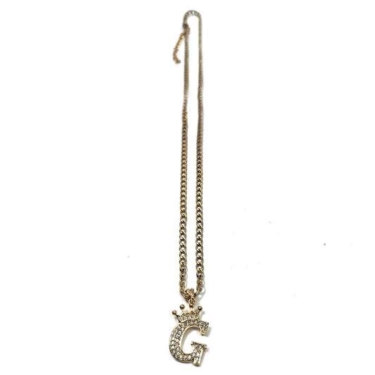 Gold Plated Monogram G Crown Pendant Necklace with Cubic Zirconia