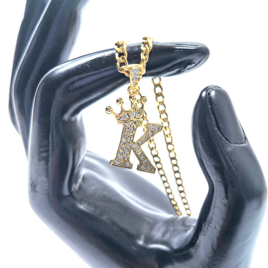 Gold Plated Monogram K Crown Pendant Necklace with Cubic Zirconia