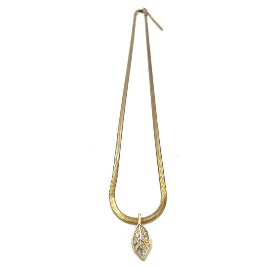 Gold Plated Monogram H Crown Pendant Necklace with Cubic Zirconia