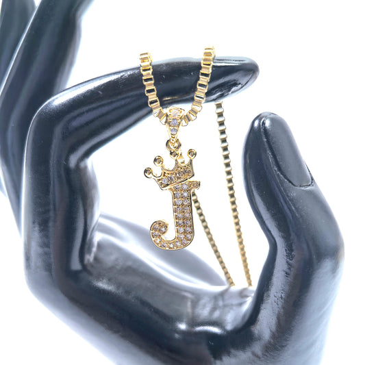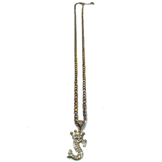 Gold Plated Monogram J Crown Pendant Necklace with Cubic Zirconia