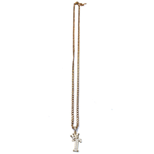Gold Plated Monogram T Crown Pendant Necklace with Cubic Zirconia