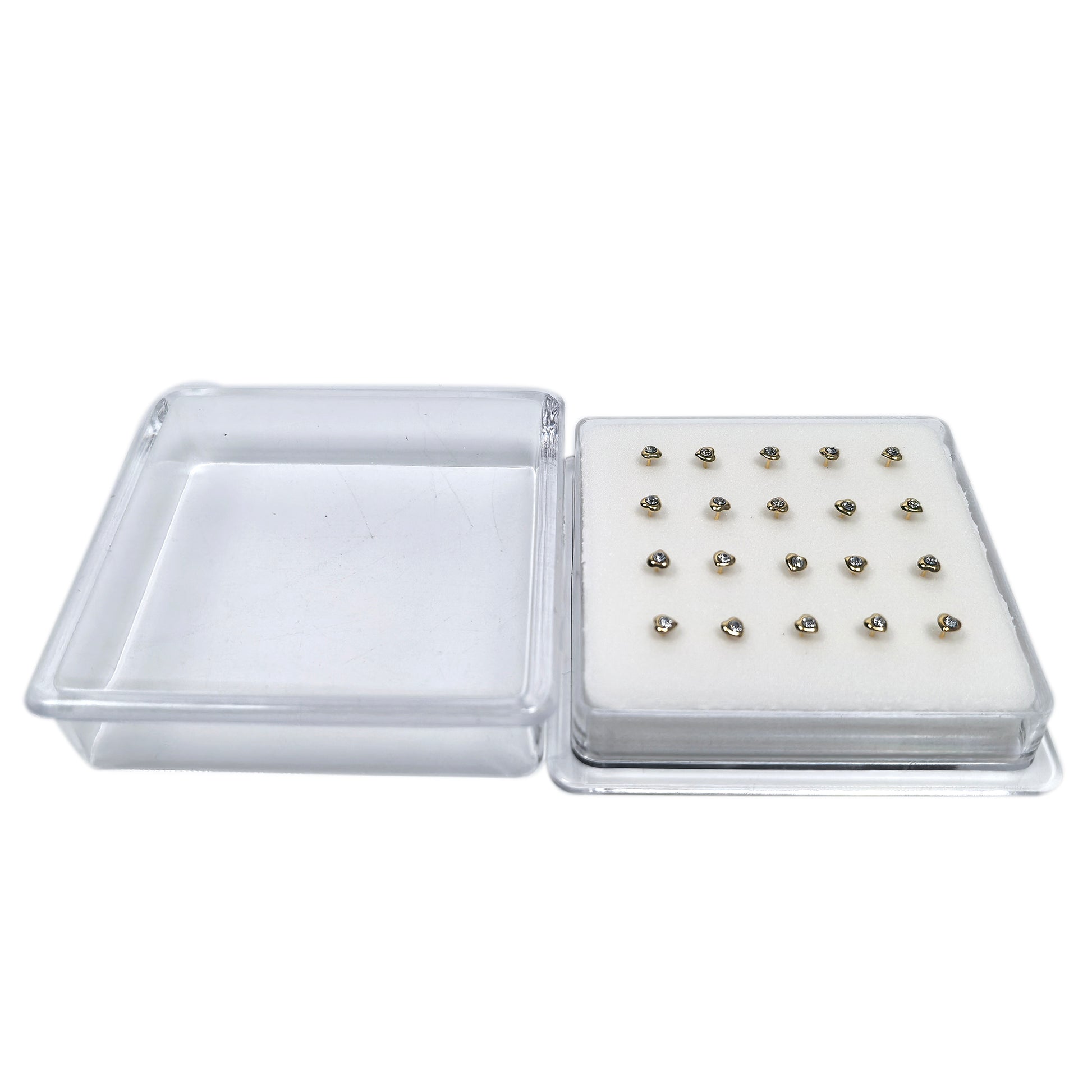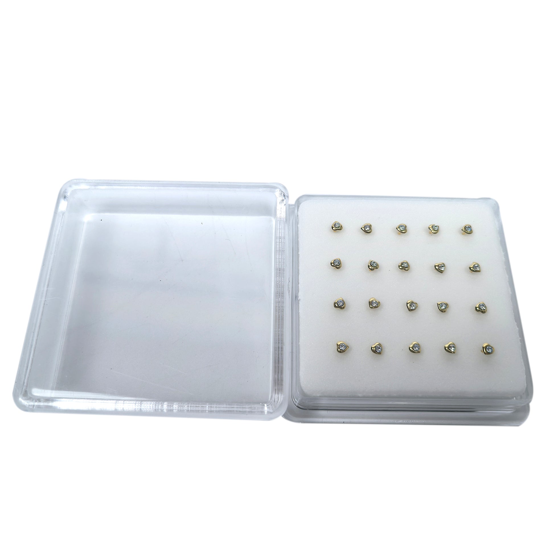 18K Gold-Plated Heart Nose Studs with Diamond 10 Pairs Box Set