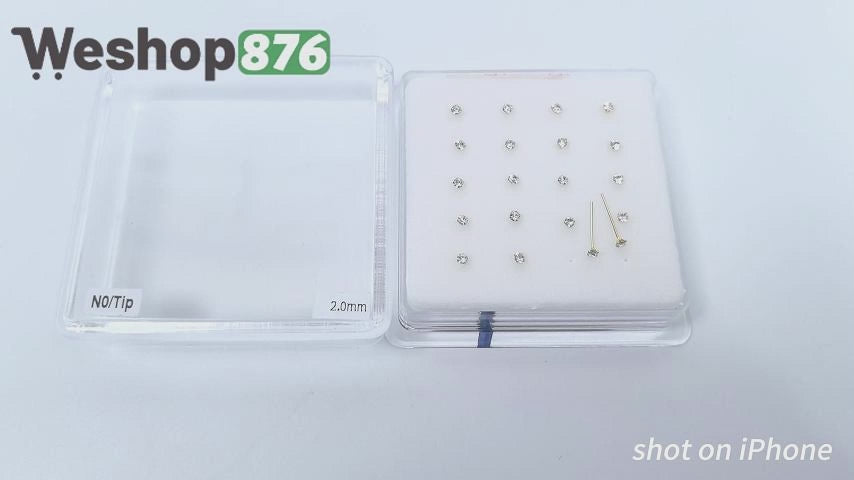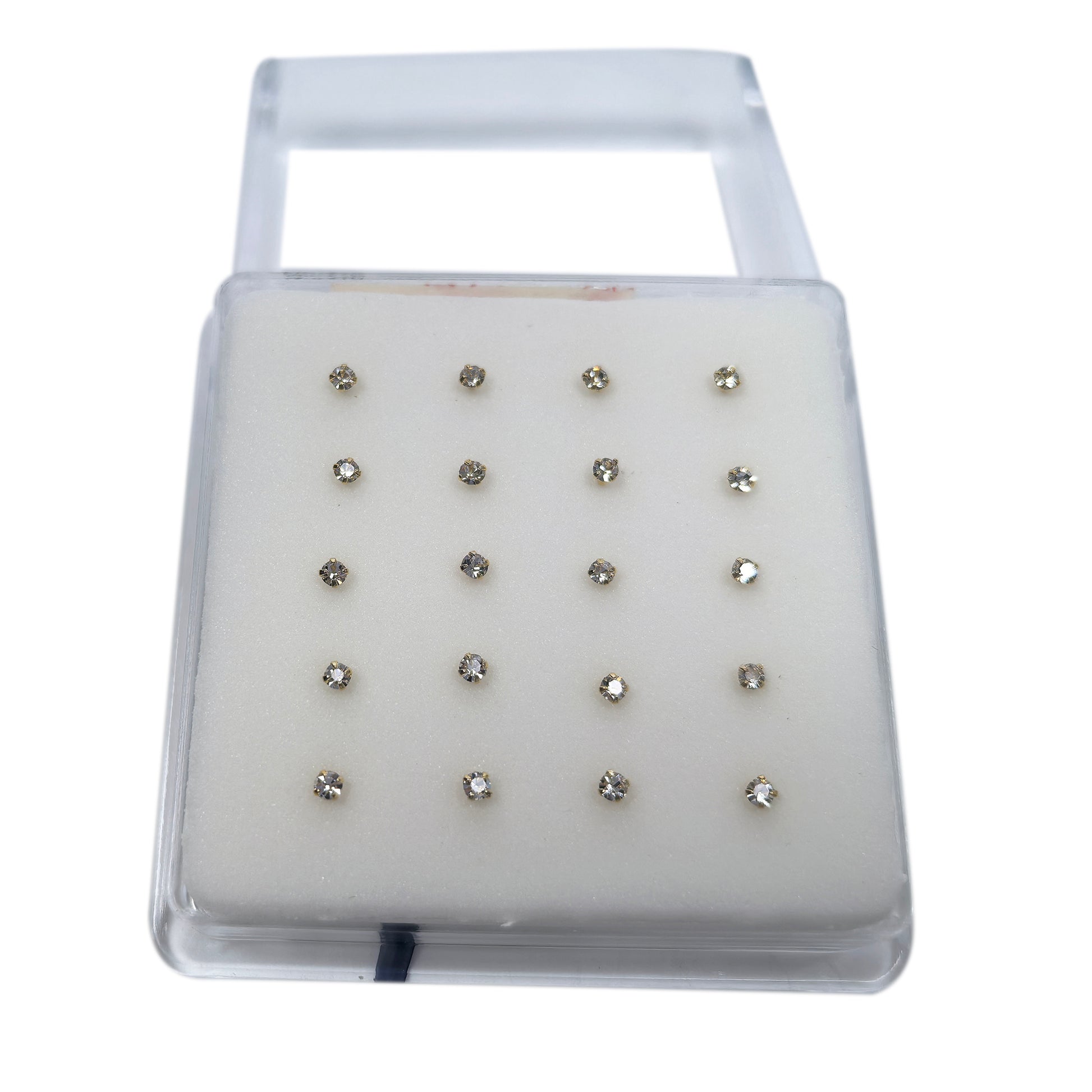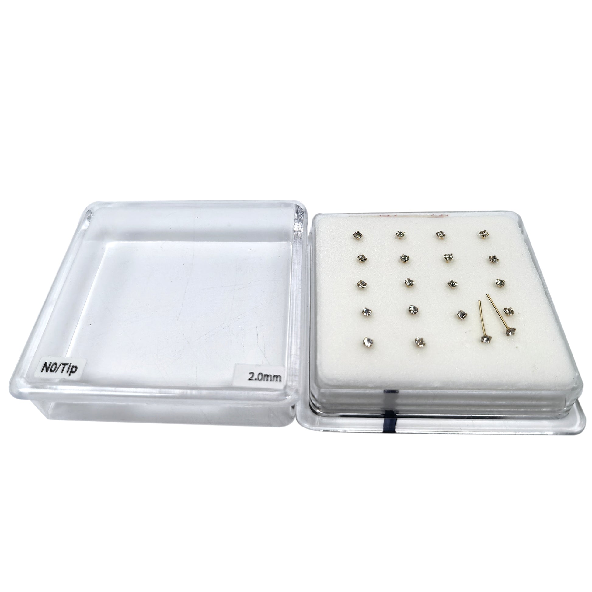 18K Gold-Plated Nose Studs with 2.0mm Diamond 10 Pairs Box Set