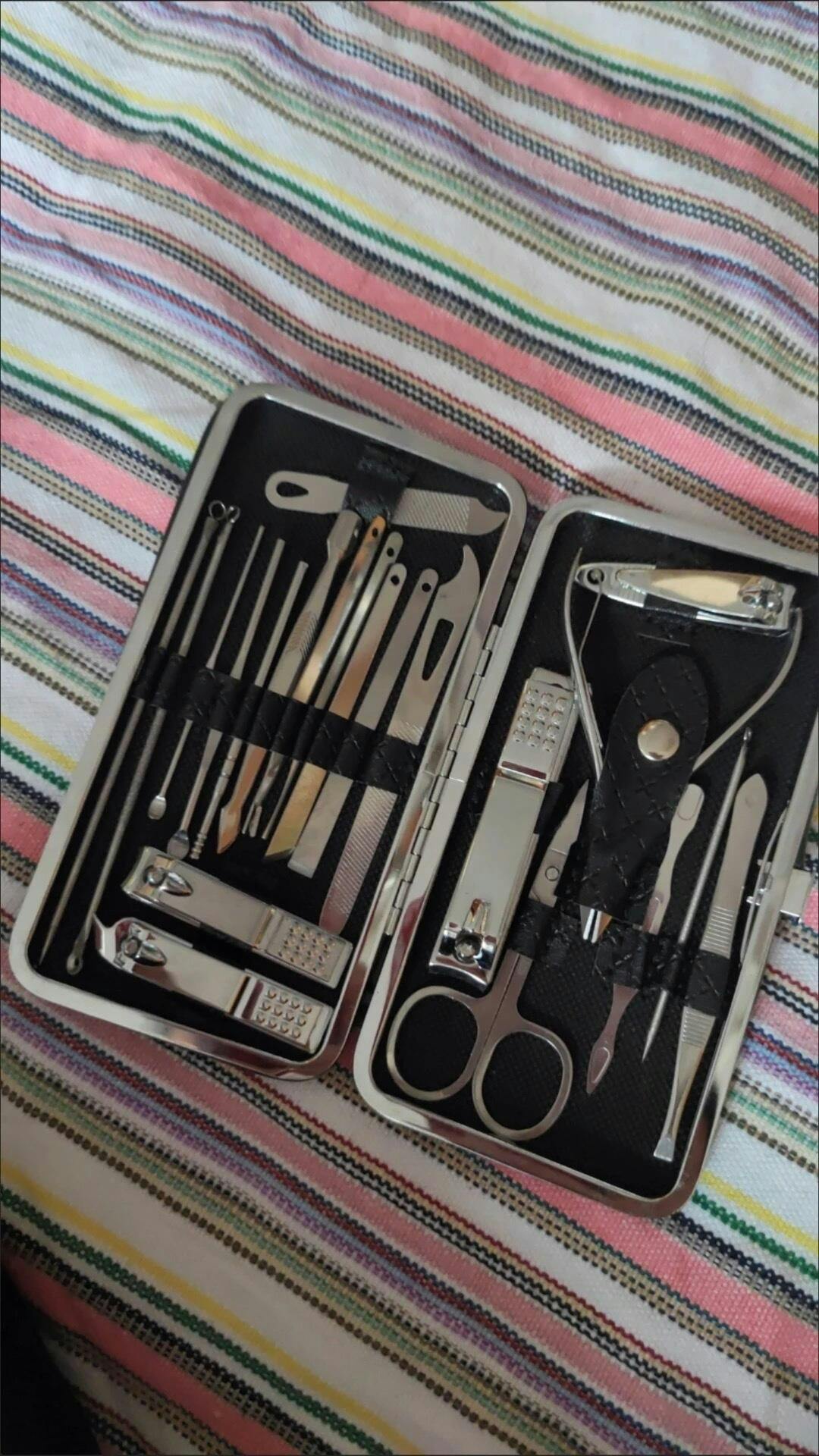 Multiple tool options: The Professional Manicure Kit contains 19 tools for hand care, facial care, and foot car, which can meet all of your needs. There is no need to pay for a single nail clippers or Nose Hair Scissors; money can be save d. Even thick nails can be easily cut off directly with no need to use a lot of force.