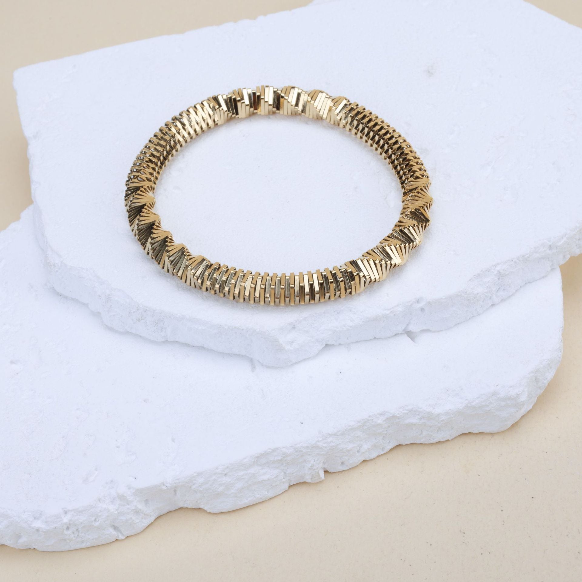【Complete Stacking Set: Waves & Statement Cuff】This premium set offers a complete layering solution, including three delicate wave-textured bangles and one bold textured spring cuff bracelet. Mix and match to create looks from minimal to statement.