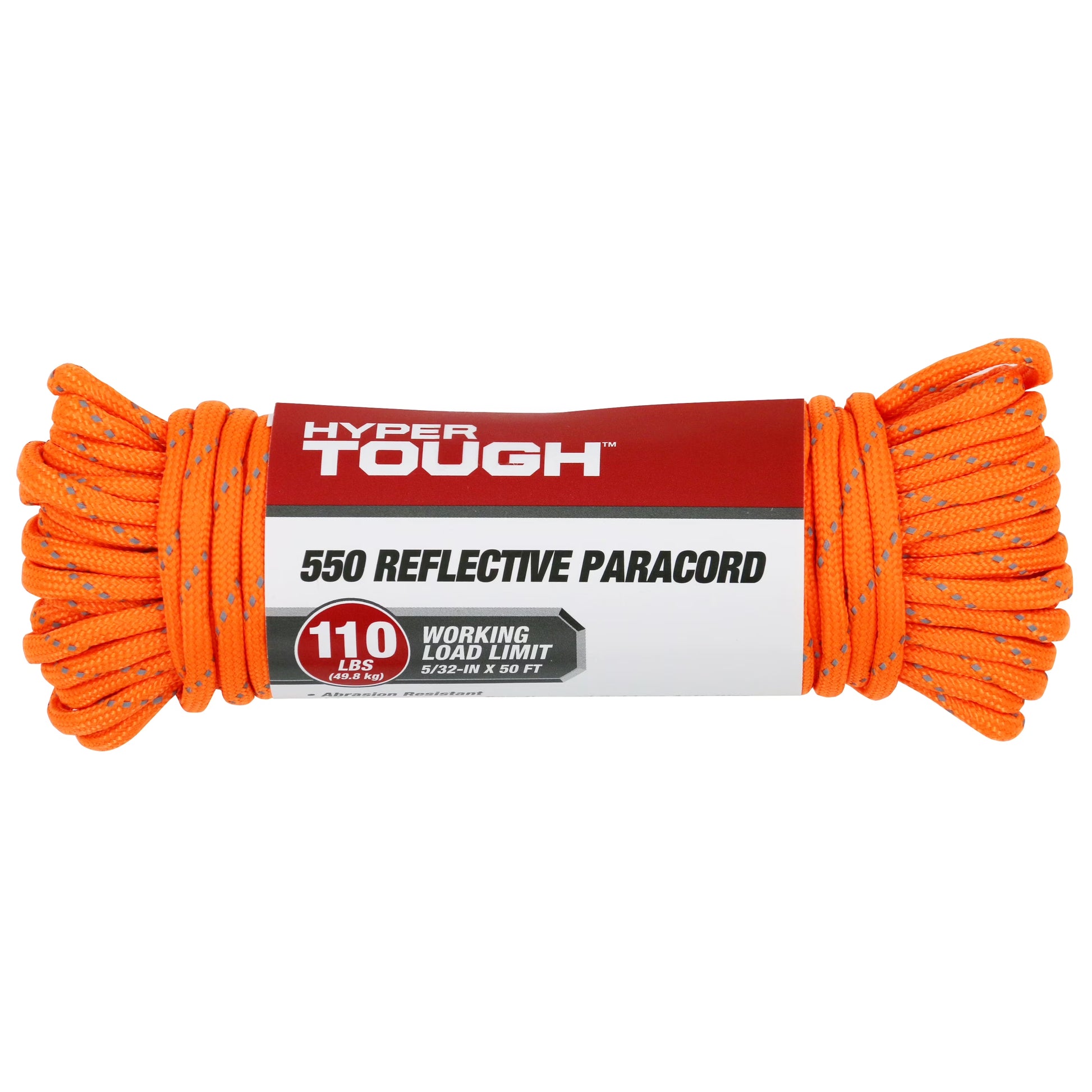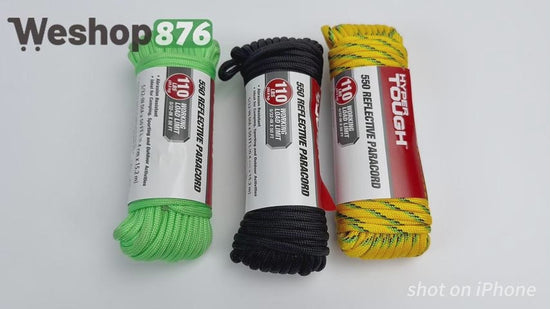 5/32 inch x 50 ft, 550 Reflective Paracord offers versatile use; 100% polyester construction provides strength and durability. Heavy-duty, 5.5 mm cordage is ideal for securing a shelter or tying things down. 7 inner strands can be pulled apart for use as a fishing line, thread, floss, and more. Not intended for climbing use.