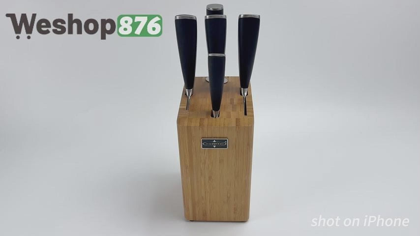 Five-Slot Knife Block: Designed with five slots, the block has a stable wood inner layer and a durable bamboo outer layer, with a natural texture and unique beauty.