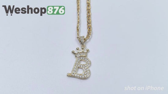 Gold Plated Monogram B Crown Pendant Necklace with Cubic Zirconia