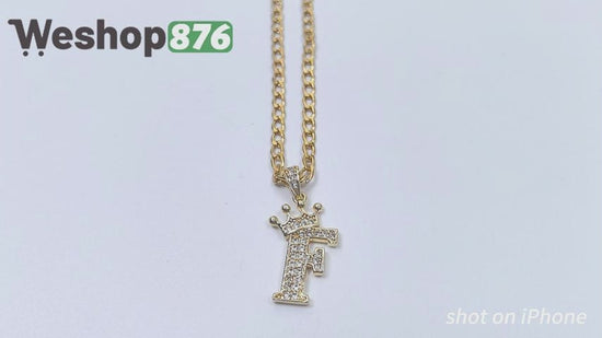 Gold Plated Monogram F Crown Pendant Necklace with Cubic Zirconia
