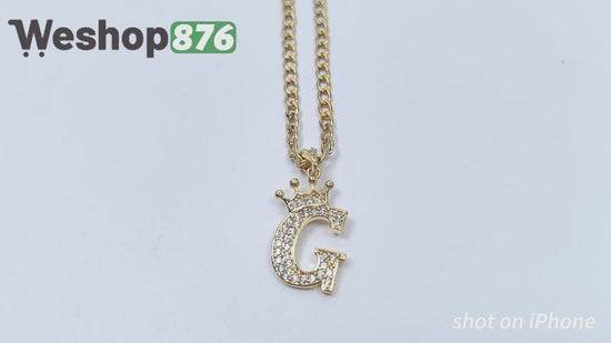 Gold Plated Monogram G Crown Pendant Necklace with Cubic Zirconia
