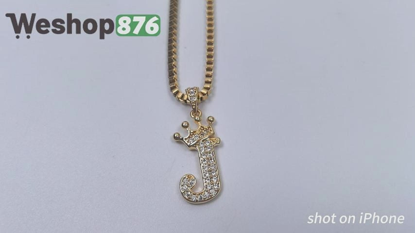 Gold Plated Monogram J Crown Pendant Necklace with Cubic Zirconia