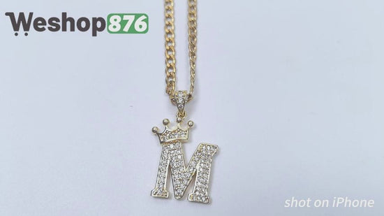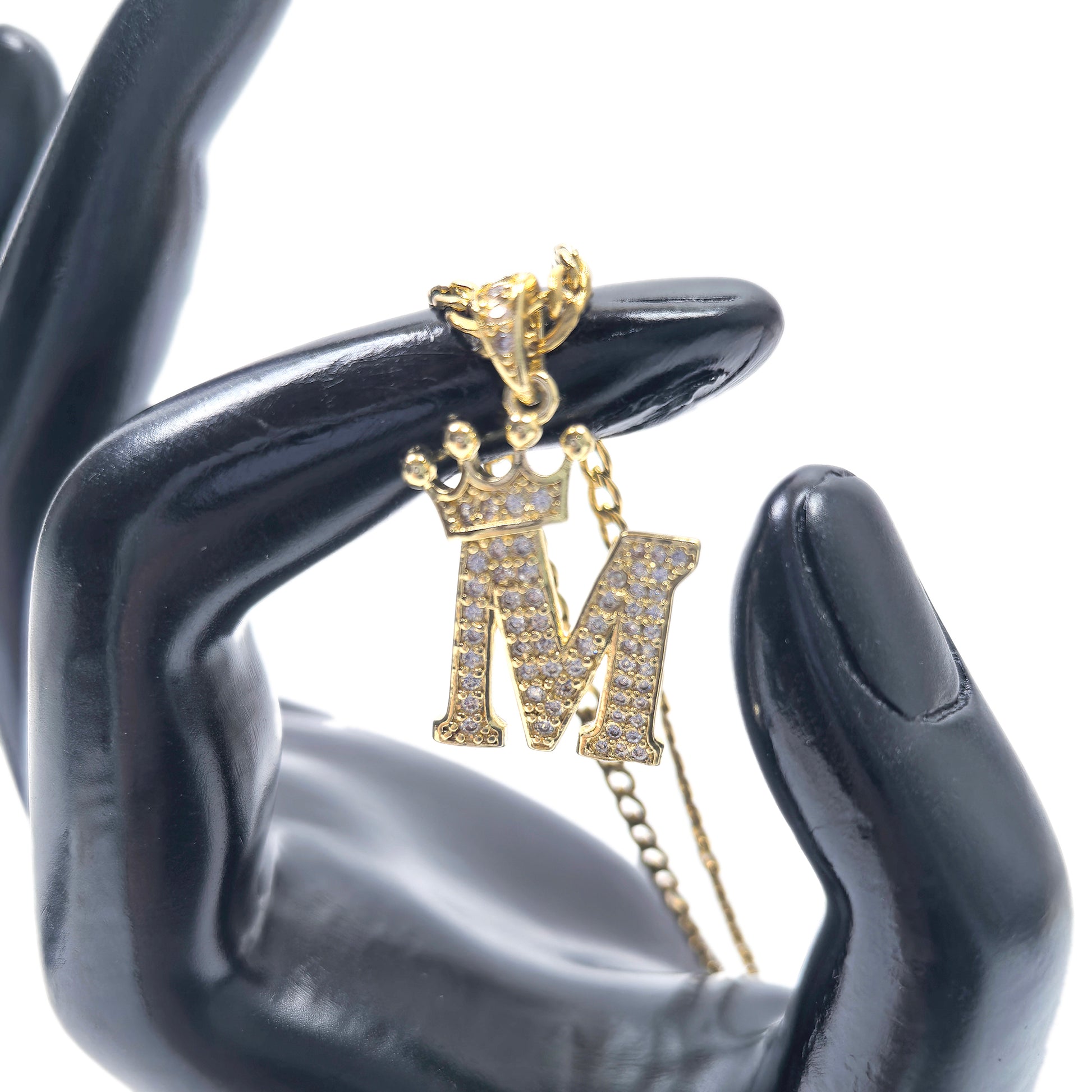 Gold Plated Monogram M Crown Pendant Necklace with Cubic Zirconia