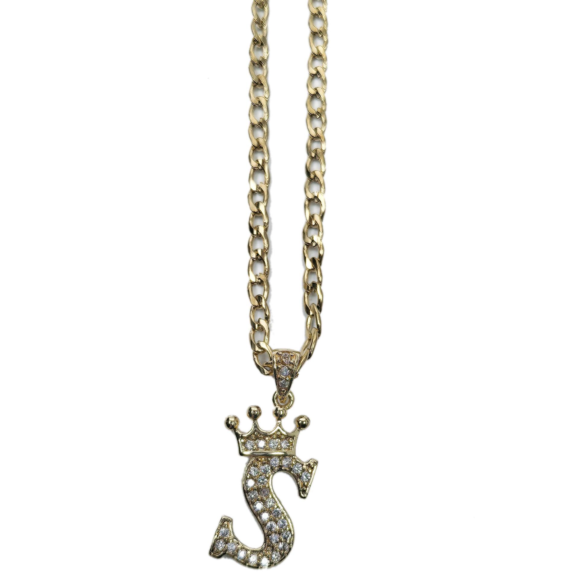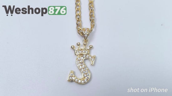 Gold Plated Monogram S Crown Pendant Necklace with Cubic Zirconia