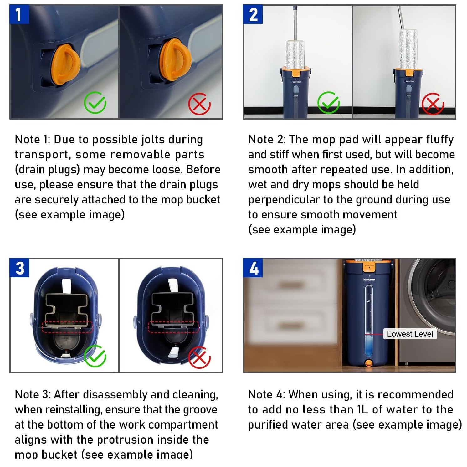 【3-Tank Mop Bucket】HoMettler mop and bucket set with wringer consists of 3 chambers, one for clean water, one for dirty water, and a separate work chamber. This flat mop and bucket system separates clean and dirty water, ensuring that the mops are always cleaned with fresh water, keeping floors and surfaces clean every time