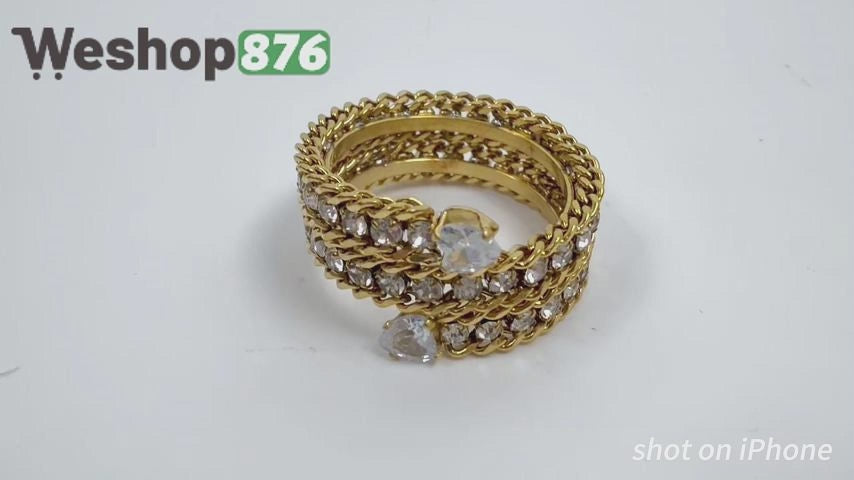 18K Gold-Plated Multi-Layer Full Cubic Stone Adjustable Ring