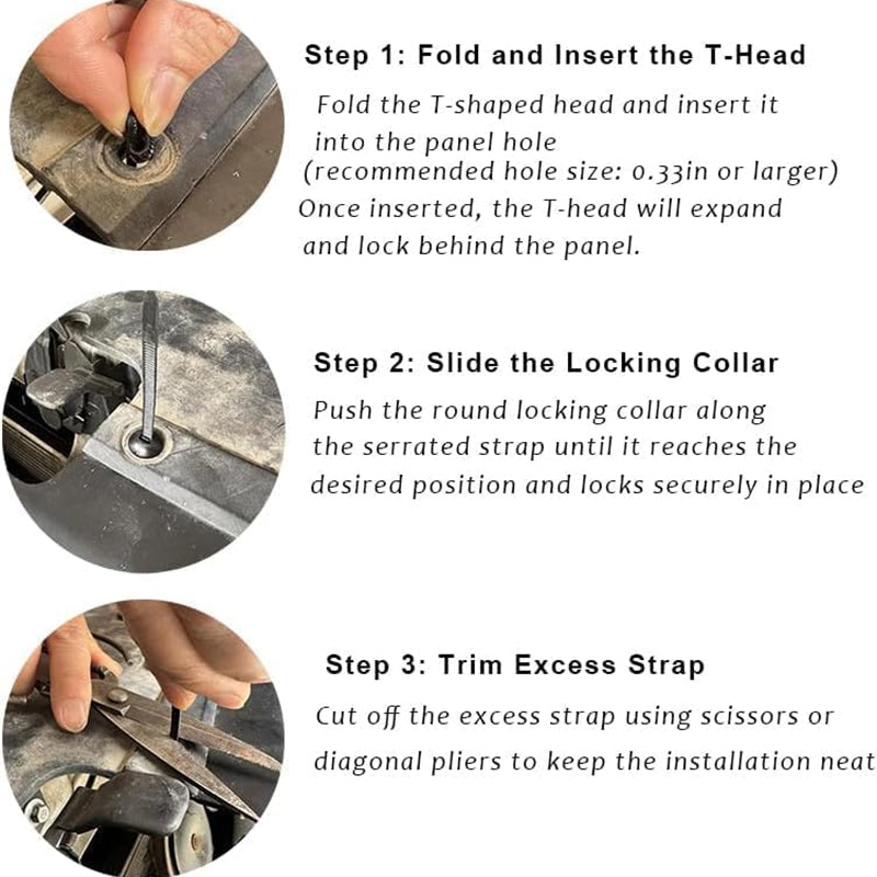 These multipurpose nylon zip ties work great for car daily repair, as well as bundling wires, organizing gear, or securing items at home, in the garage, or on job sites.