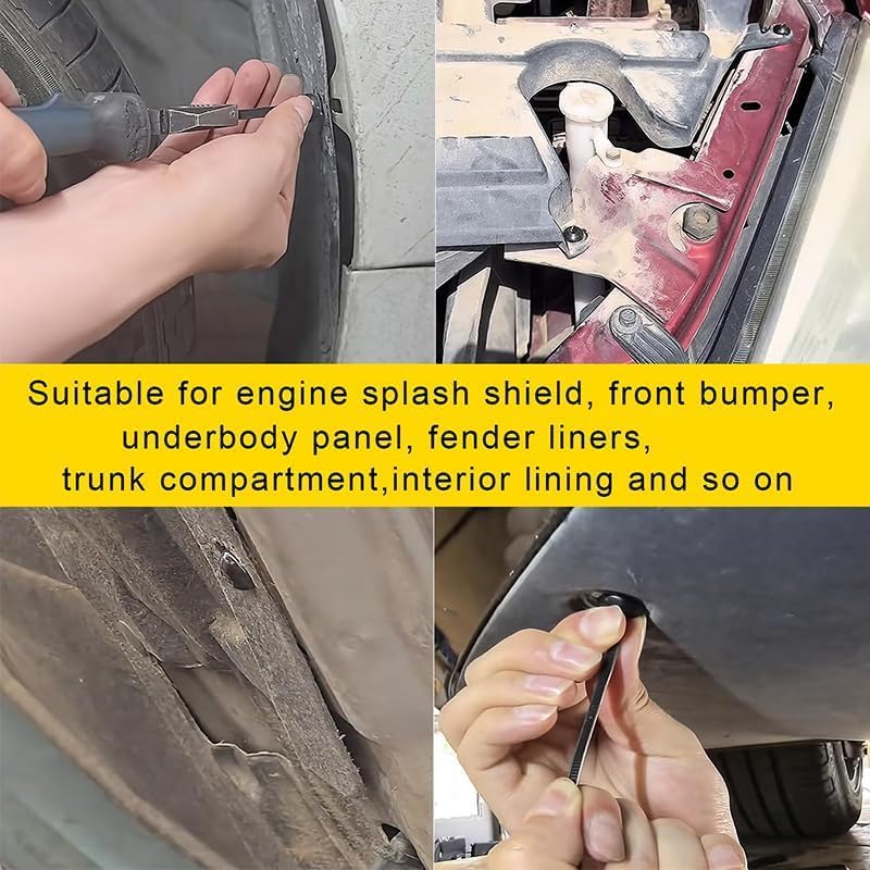 Nylon universal cable tie buckle replaces screws and clips for most car models; ideal for securing bumpers, trunk linings, engine guards, and underbody panels during daily auto repair.