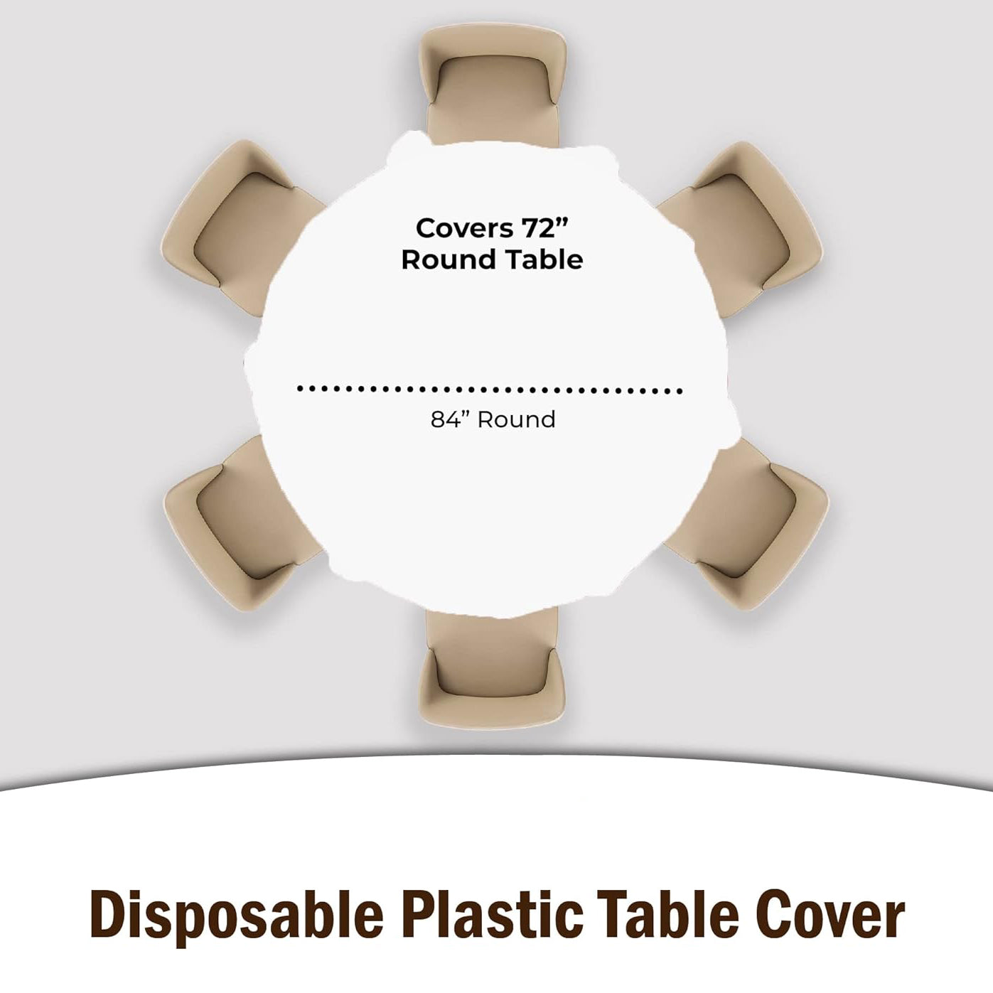 PREMIUM QUALITY PROTECTION: This 84 in Round plastic tablecloths will cover any table up to 7 feet. Unlike your typical paper table clothes these disposable table covers for parties are spill and waterproof!!!