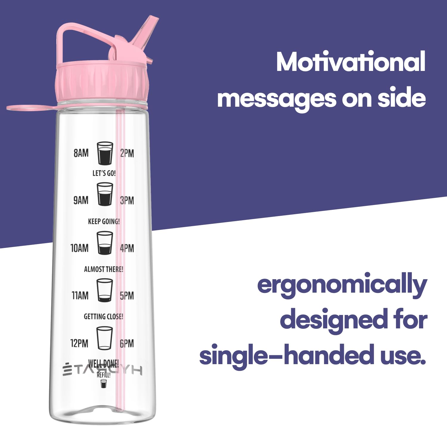 MOTIVATION - This water bottle comes with time markings, helping you track your water intake and motivating you to hit your daily targets.