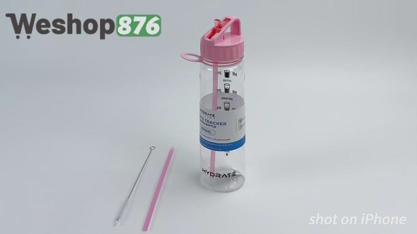 Plastic Water Bottle with Time Marker and Straw (2 options, Black Pink)