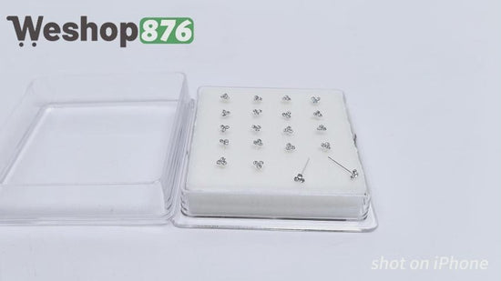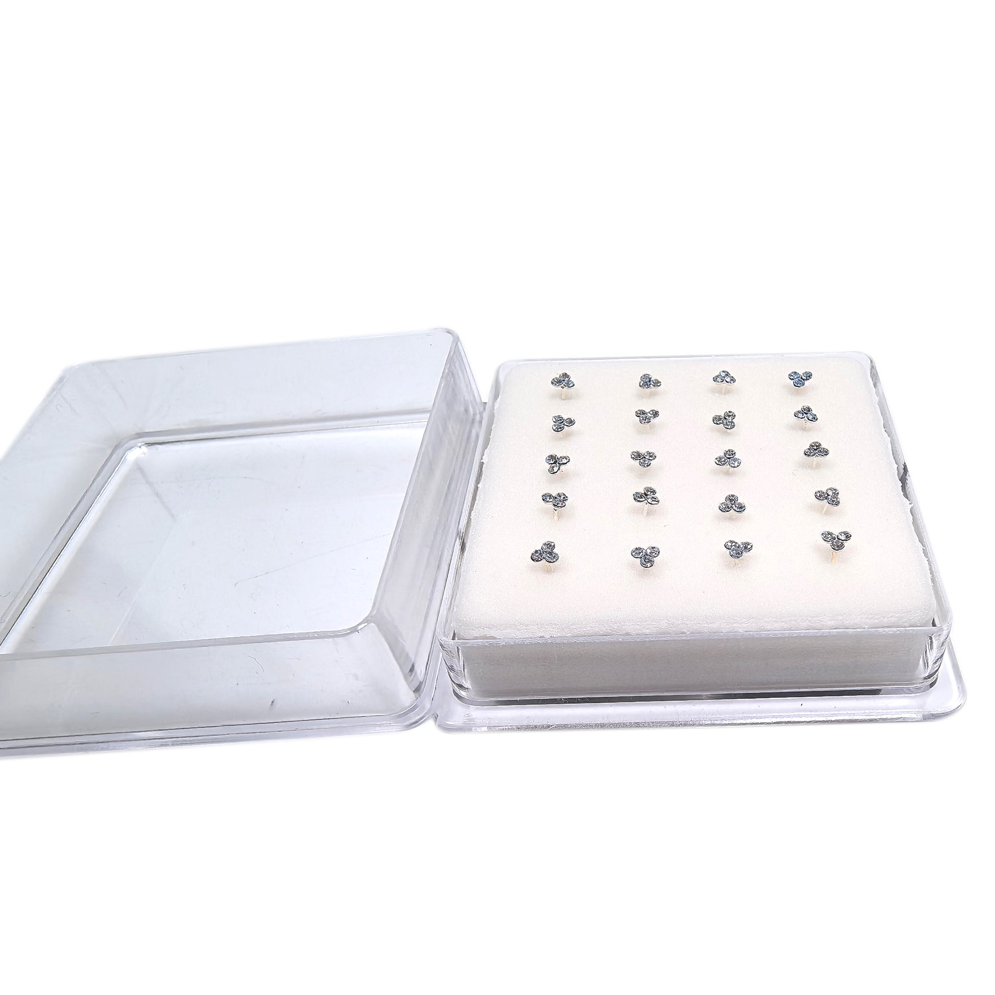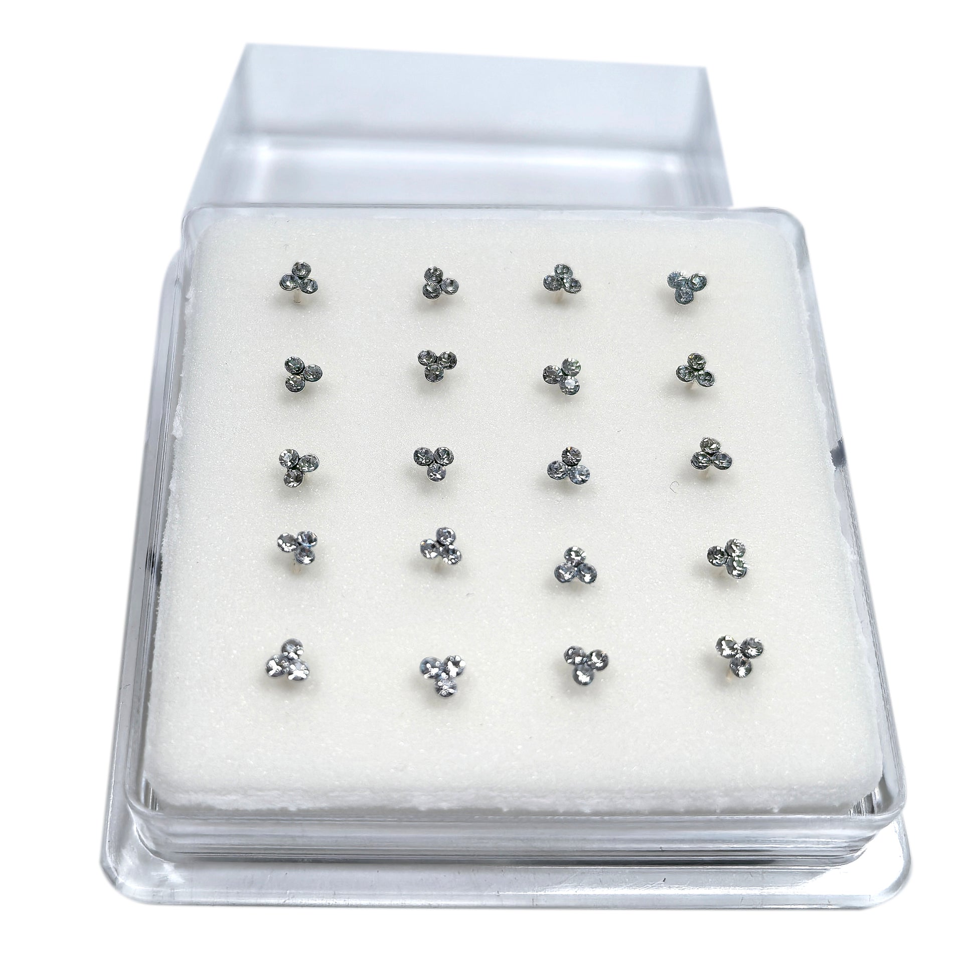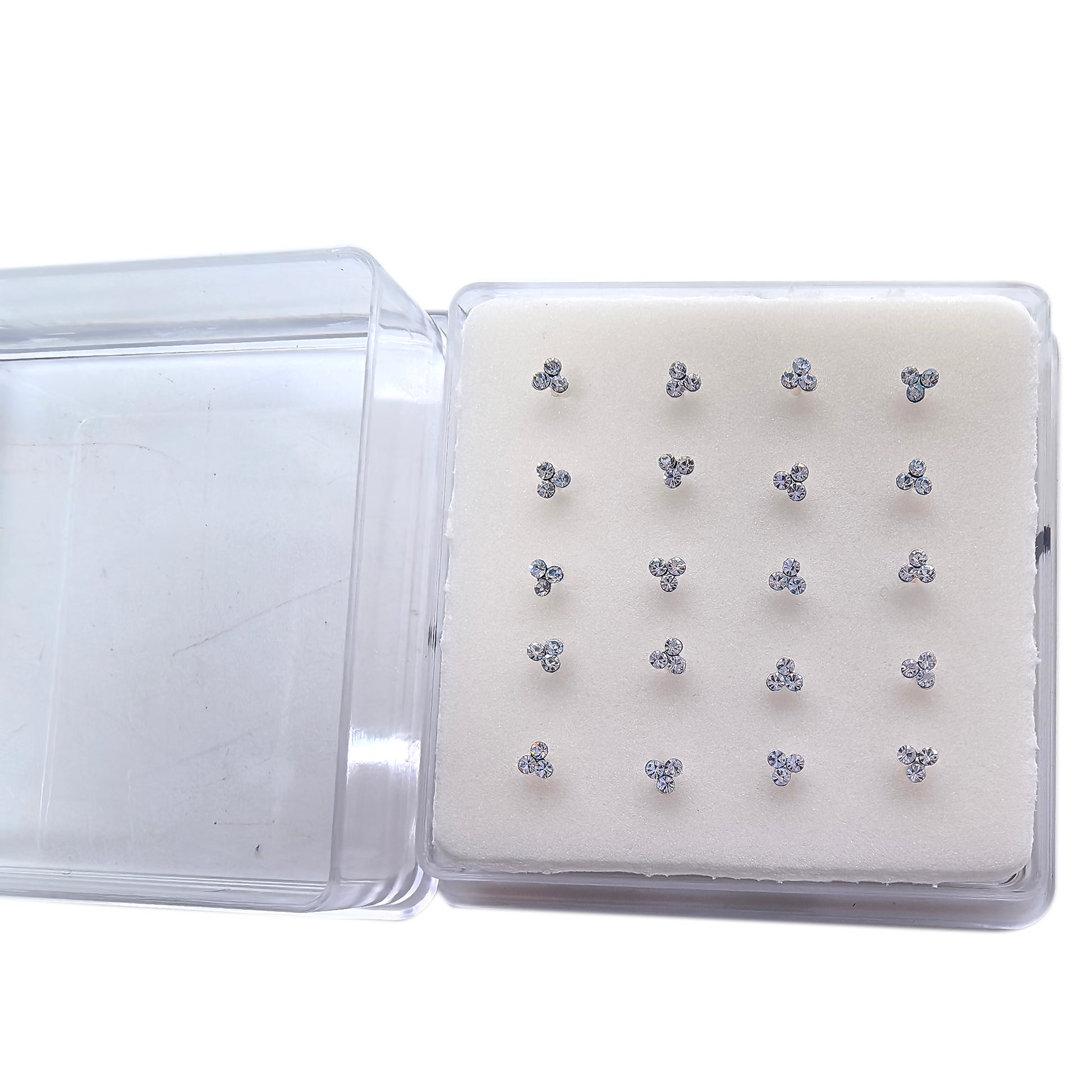Silver Clover Nose Studs with Diamond 10 Pairs Box Set