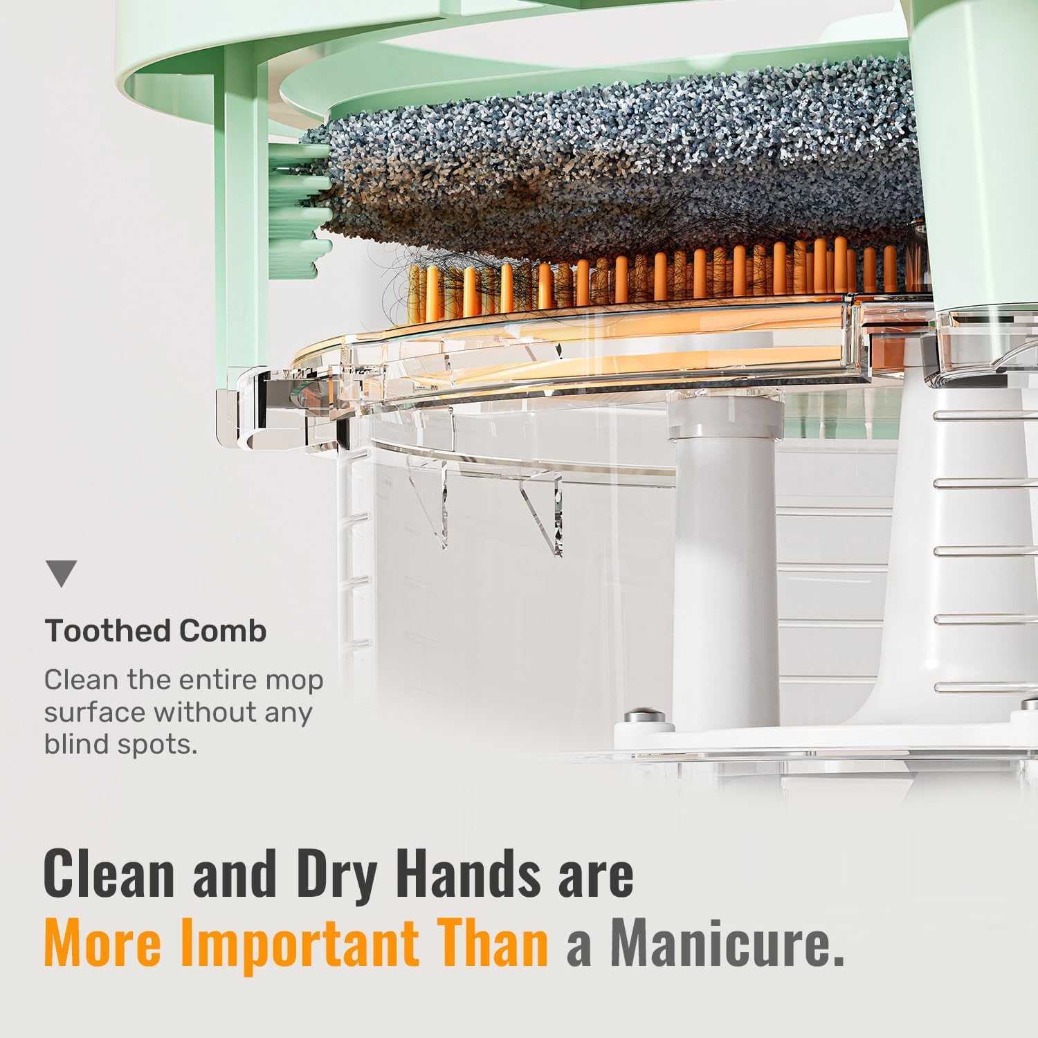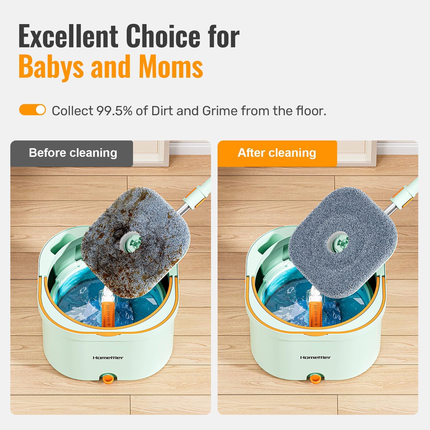 【Excellent for Pet Households】Designed for pet owners, the microfiber mop pad is infused with nylon threads to trap pet hair effectively. As spin the mop in the bucket, comb teeth in the inner chamber capture the hair, making mops and buckets for floor cleaning easy to clean up hair.
