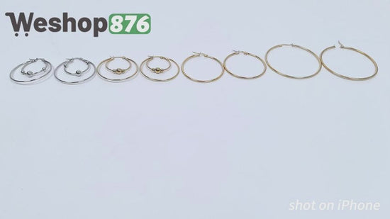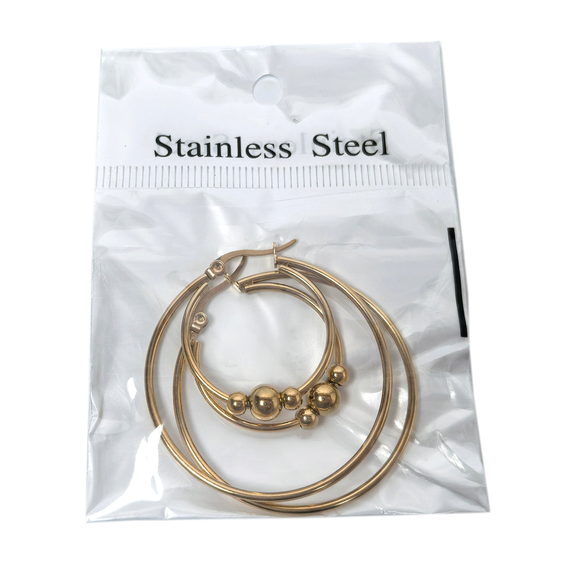 Stainless Steel 4 Pairs Hoop Earring Set: Beaded, Plain, Gold & Silver