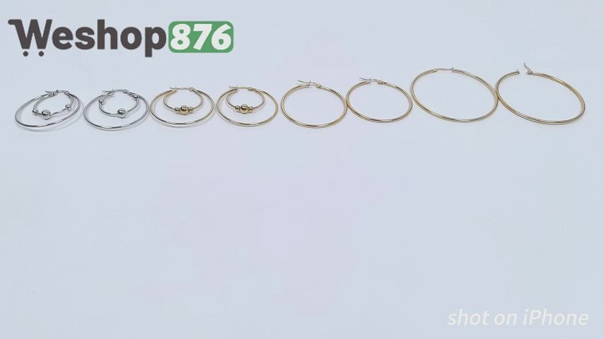 1x Gold Beaded Ball Hoop Earring, 1x Sliver Beaded Ball Hoop Earring, 2x Gold Hoop Earring.