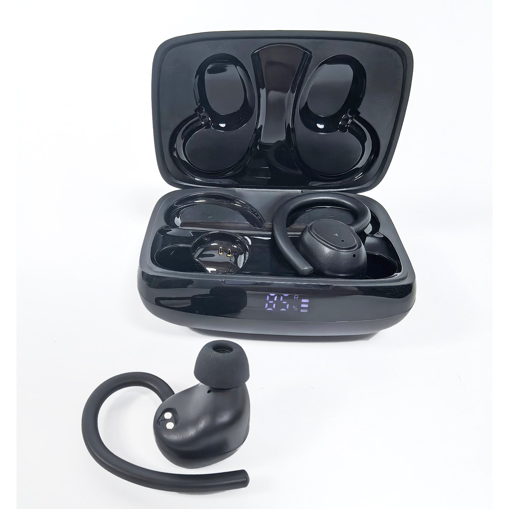 Wireless Earhook In-Ear Earphones with Digital Display, Black